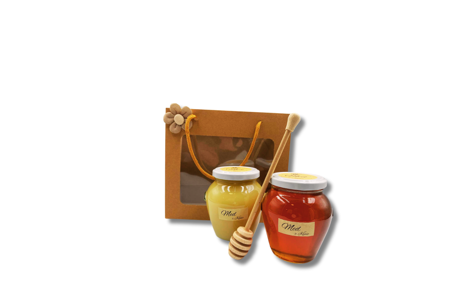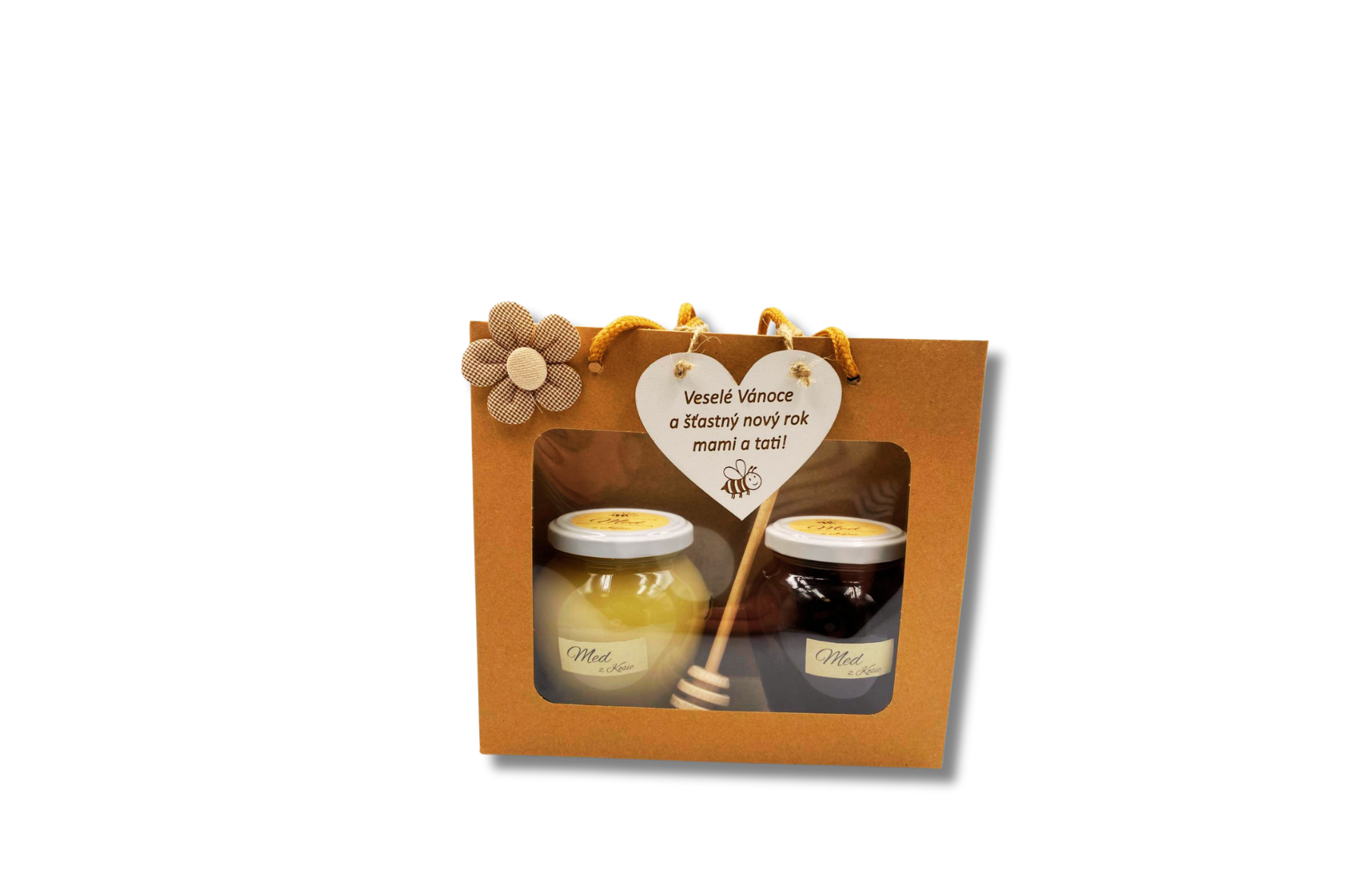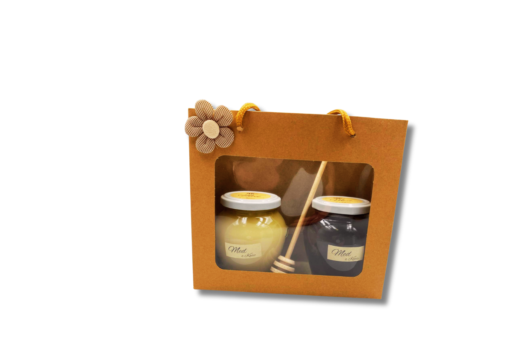 Taška 20x18 cm s průhledným okénkem, med 400g, med pastovaný 400g,  nabírátko.
